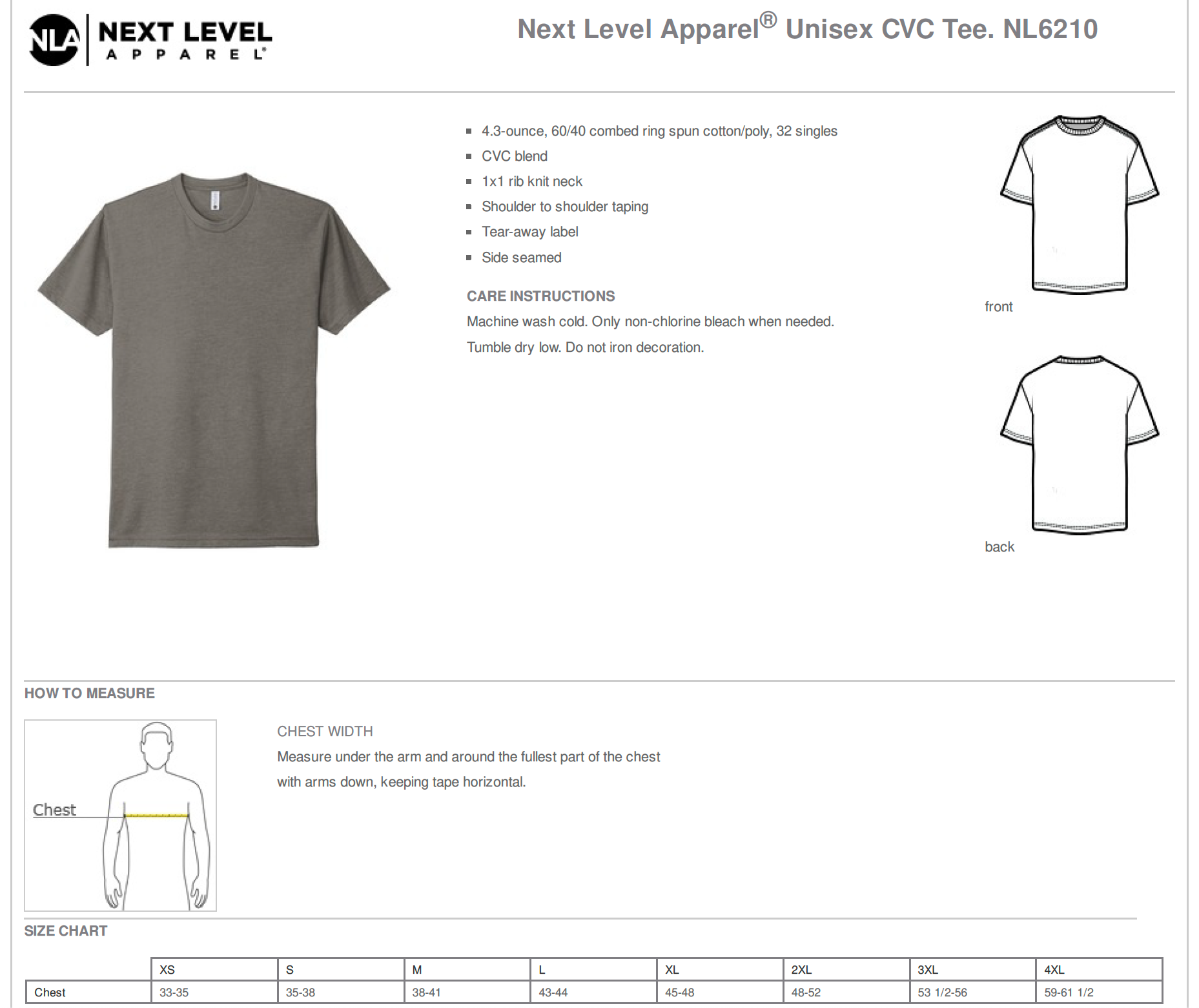 PLEASE NOTE: We're not able to process returns or exchanges for sizing issues unless the garment you received does not meet the specifications listed, so please be sure to check the garment measurements chart before purchasing.