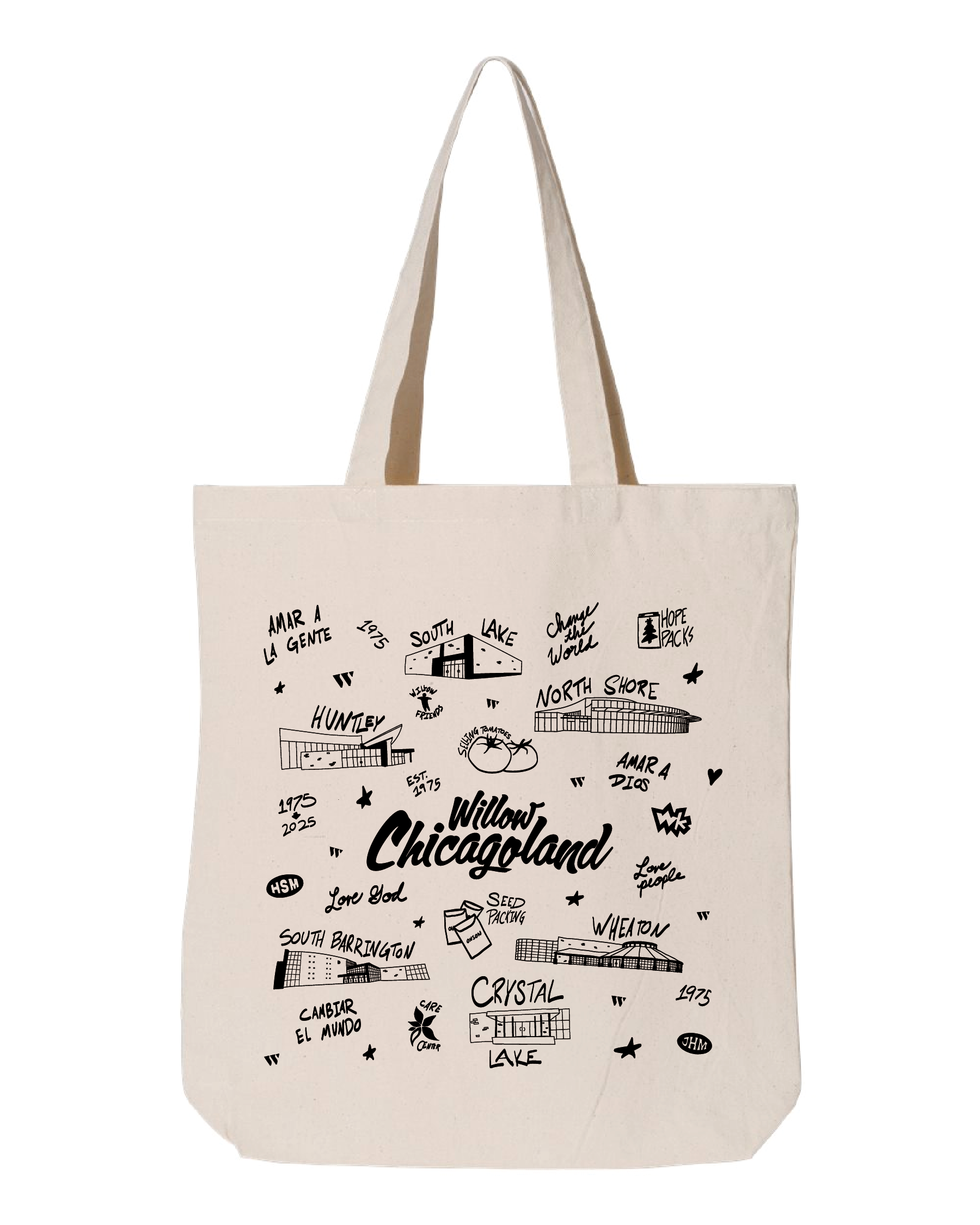 The Willow Chicagoland Tote is your new favorite sidekick for all your adventures! Made from sturdy cotton canvas with a gusseted design, it’s roomy enough to hold everything from books to snacks—or even a sneaky plant. With a comfy 20-inch handle, you can sling it over your shoulder and go hands-free. Measuring 15 inches wide by 16 inches tall and 3 inches deep, this tote brings playful practicality with a hand-drawn design that adds a splash of fun to your everyday carry and represents the best of Willow in all its locations.